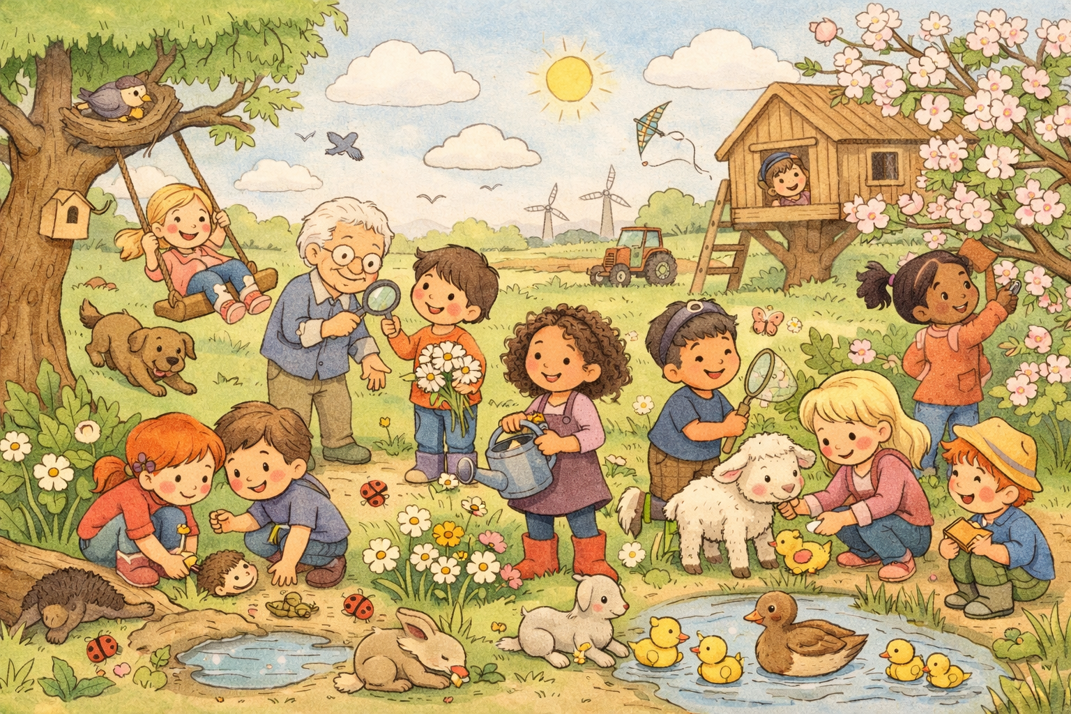 Een praatplaat is een afbeelding vol met dingen om over te praten. Je bekijkt samen het plaatje en stelt vragen aan kinderen over wat ze zien. Zo ontstaat er vanzelf een leuk gesprek. Zonder dat kinderen het doorhebben leren ze nieuwe woorden, leren ze nadenken en leren ze om hun gedachten te verwoorden. Een praatplaat is dan ook een super leuk en makkelijk hulpmiddel voor thuis of in de klas! **Thema:** Lente
