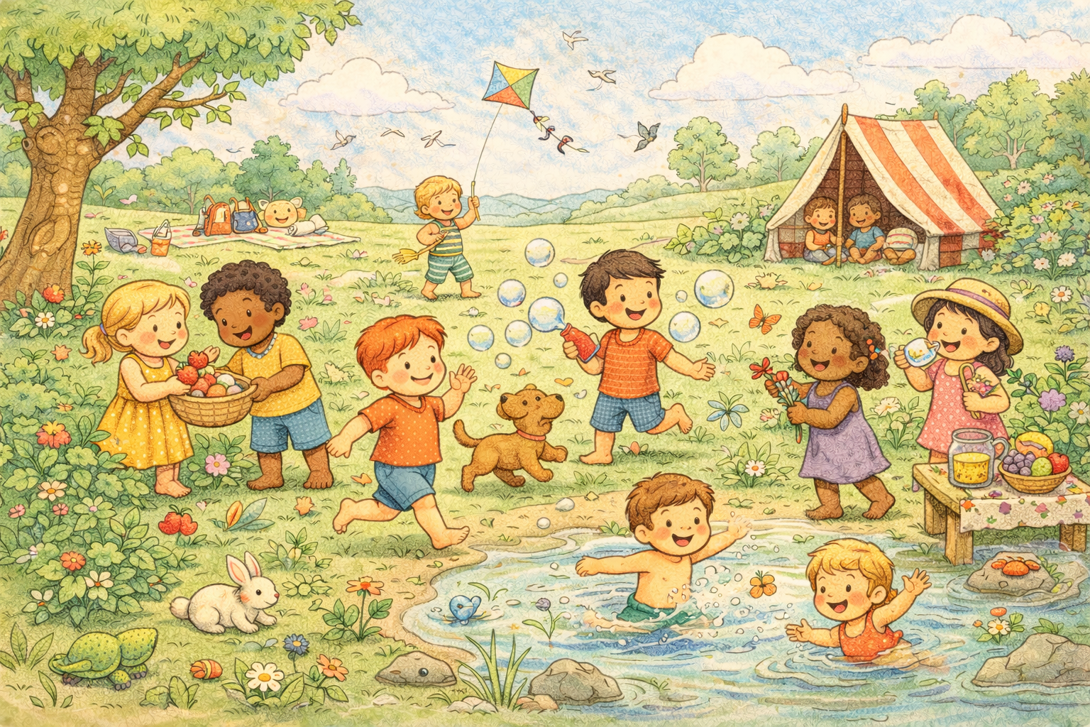 Een praatplaat is een afbeelding vol met dingen om over te praten. Je bekijkt samen het plaatje en stelt vragen aan kinderen over wat ze zien. Zo ontstaat er vanzelf een leuk gesprek. Zonder dat kinderen het doorhebben leren ze nieuwe woorden, leren ze nadenken en leren ze om hun gedachten te verwoorden. Een praatplaat is dan ook een super leuk en makkelijk hulpmiddel voor thuis of in de klas! **Thema:** Zomer